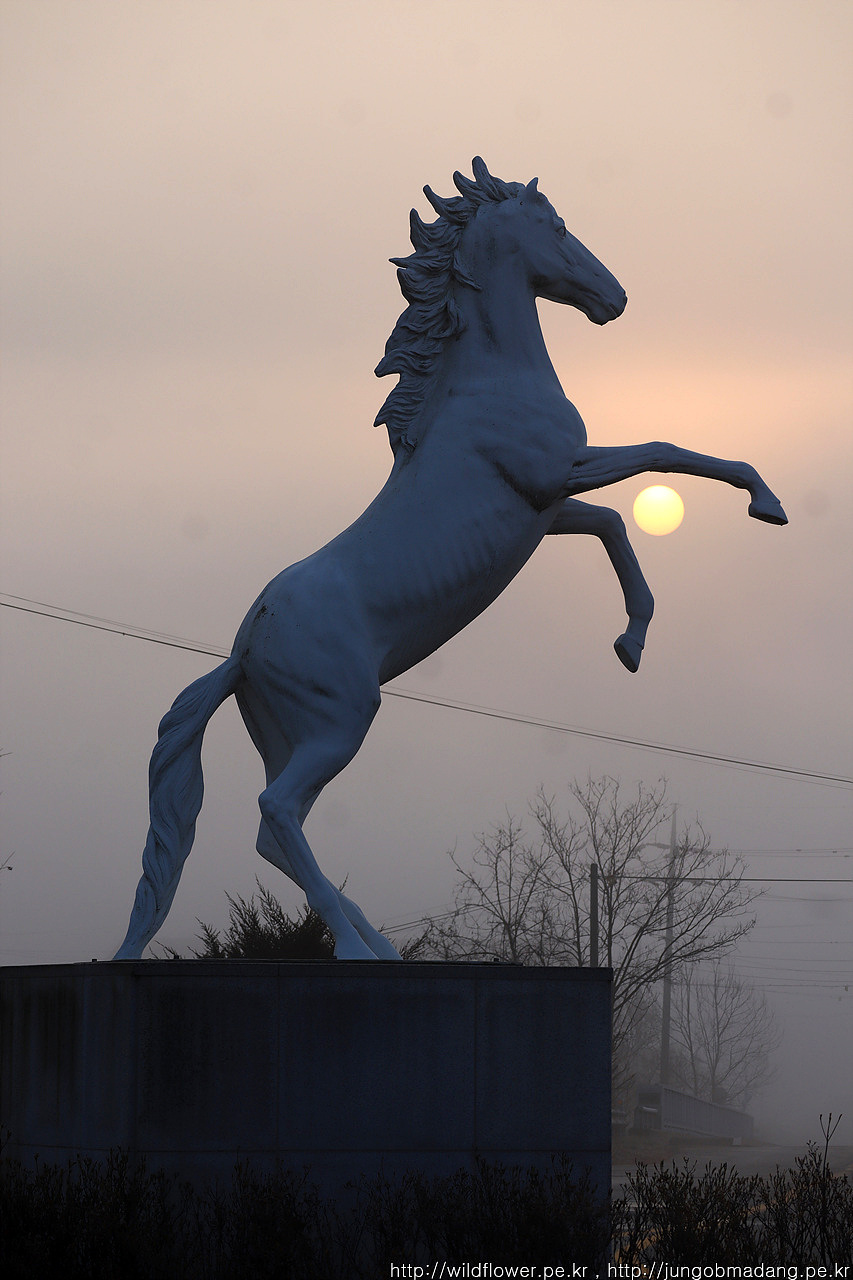 백마 조형이 햇님을 가지고 놀 구 있습니다.