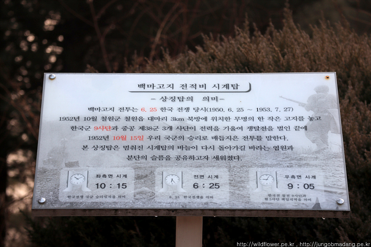 백마고지 전적지 시계탑 - 시간은 6시 25분에 멈춰 있습니다. 6.25 잊지 말아야할 아픔입니다.