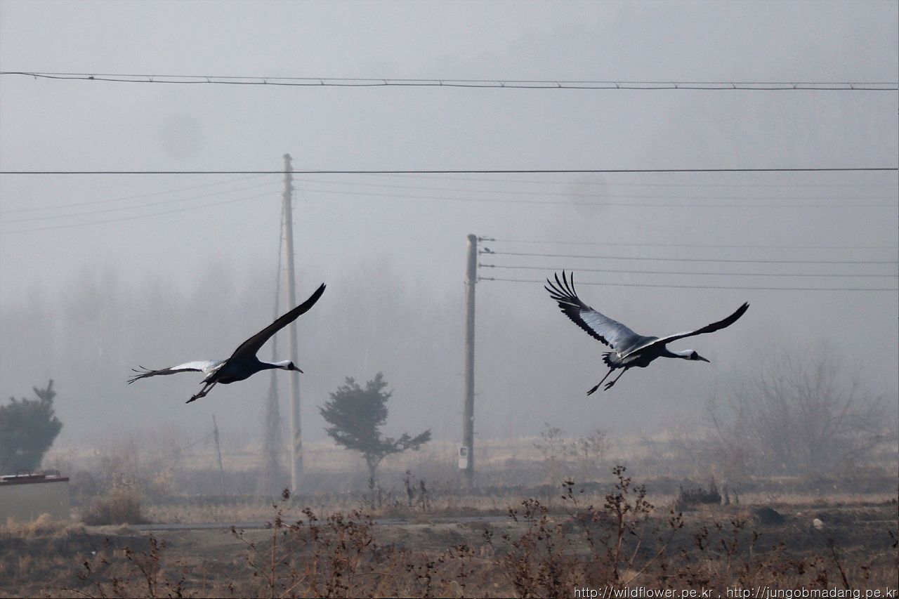 재두루미 성조 두마리가 비상합니다. 어찌 보면 왜가리와도 흡사하네요.