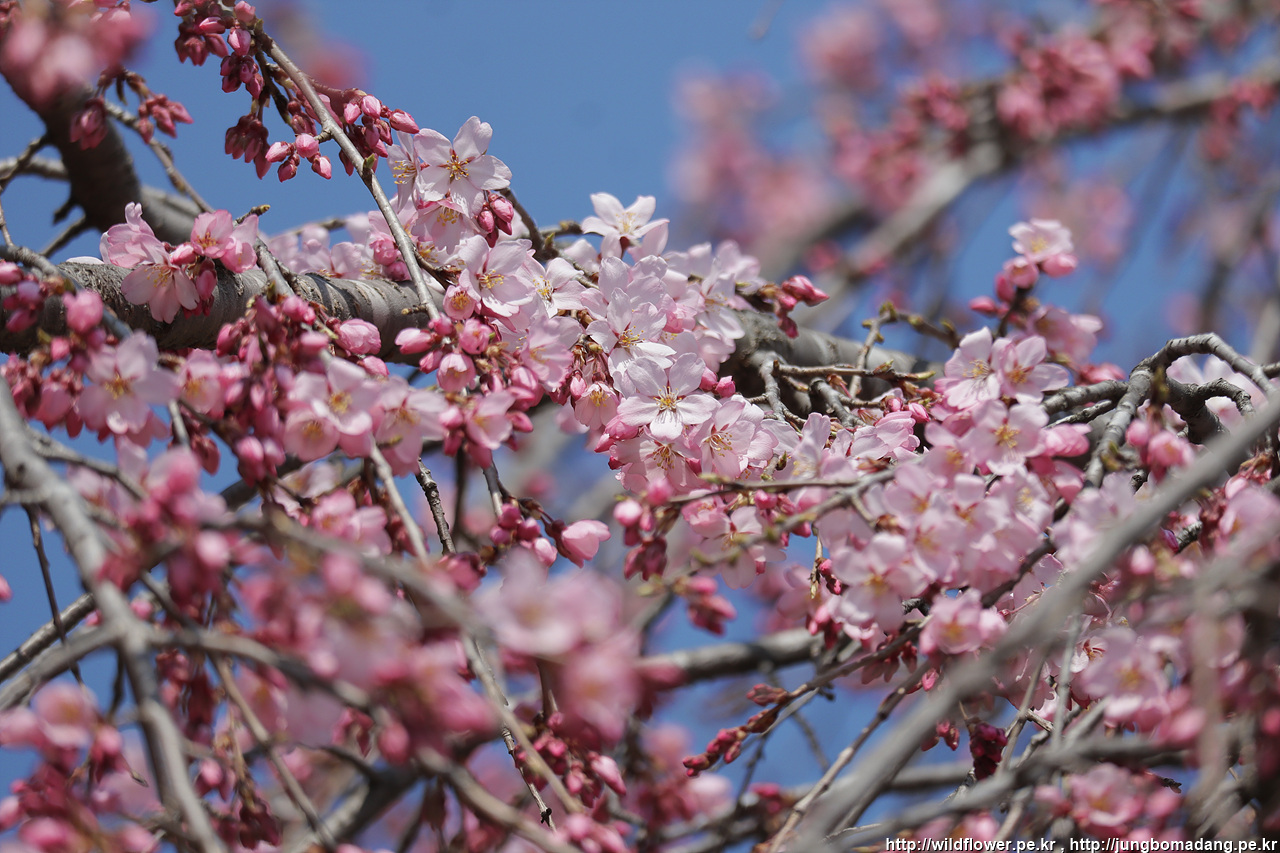 벚나무는 꽃잎이 흰색인데 반해 수양벚나무는 연한 핑크색에 좀 더 보기 좋은 거 같습니다.