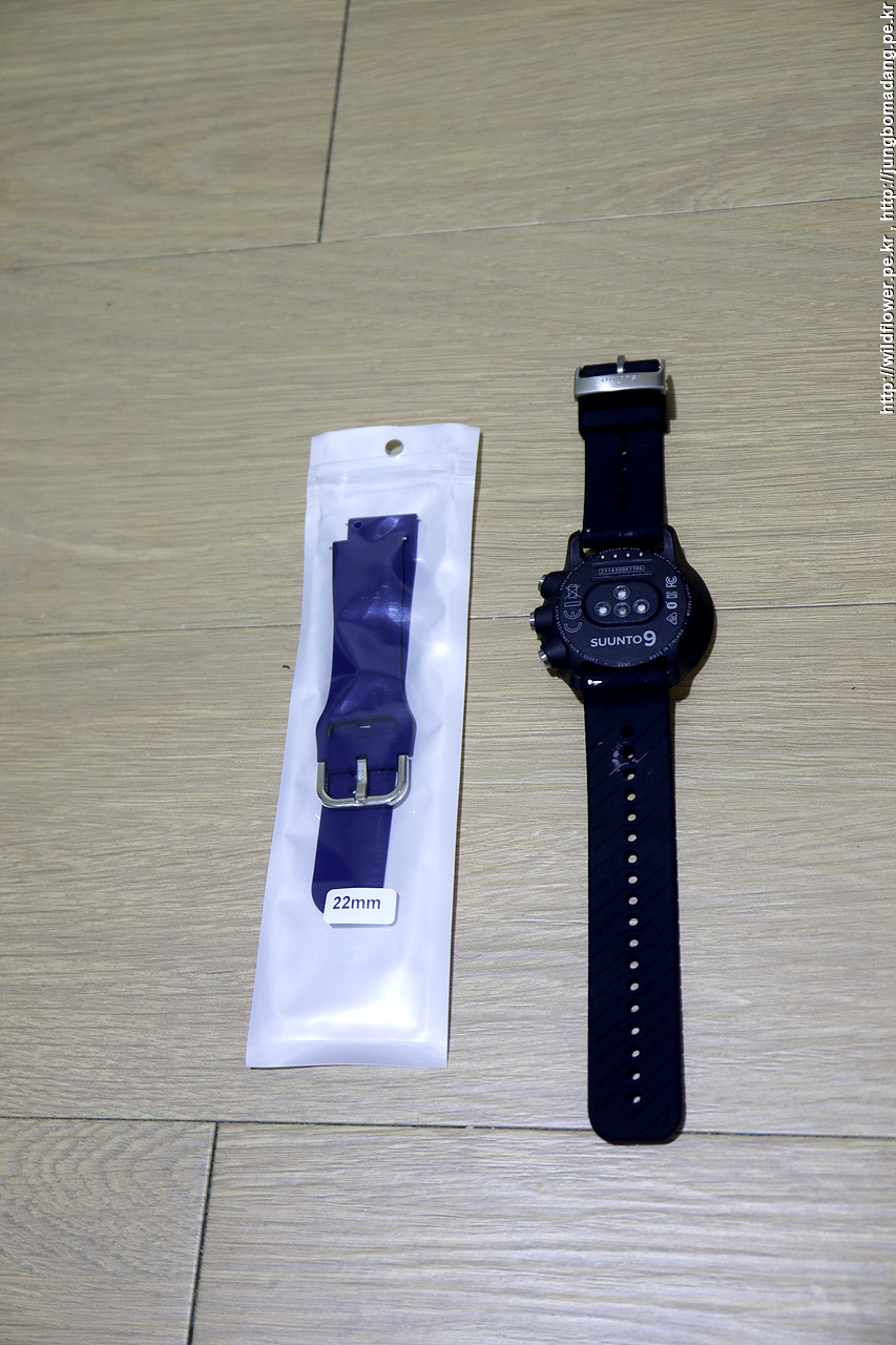 스트랩 교체도 가능한 데, 기존에 22mm 실리콘 스트랩이 있어 교체하려 했더니 순토 9는 24mm 스트랩으로 교체를 해야 합니다. 참고 하시길 바라구요.