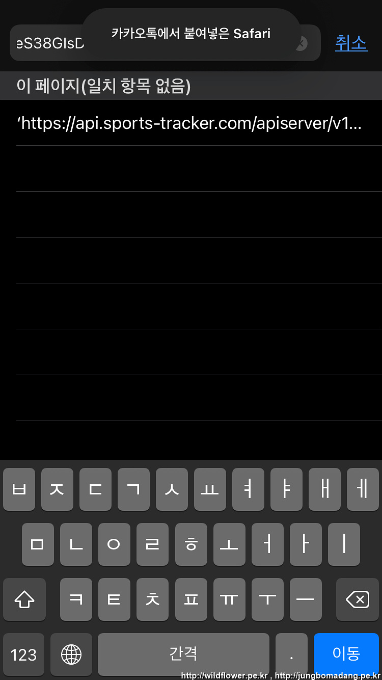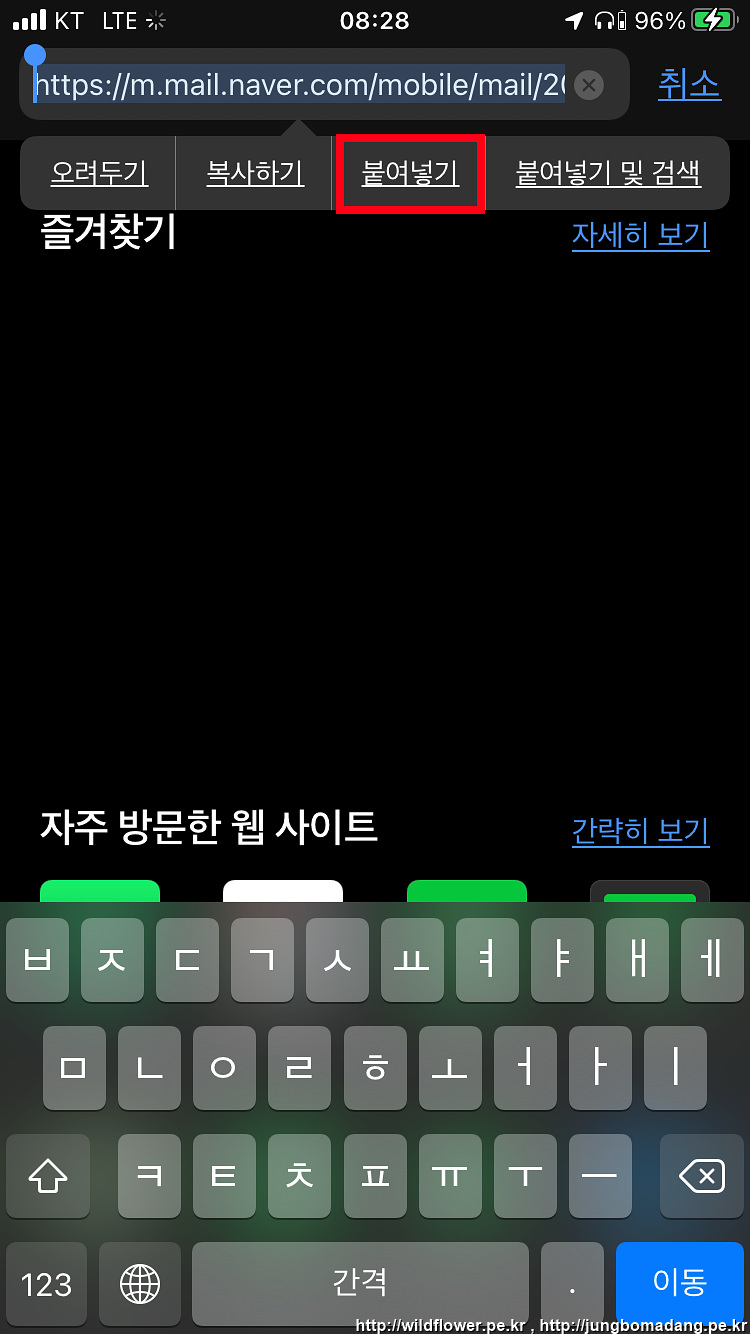 8. Safari 앱을 실행하고 주소창에 방금 복사한 링크를 붙여넣기 합니다.