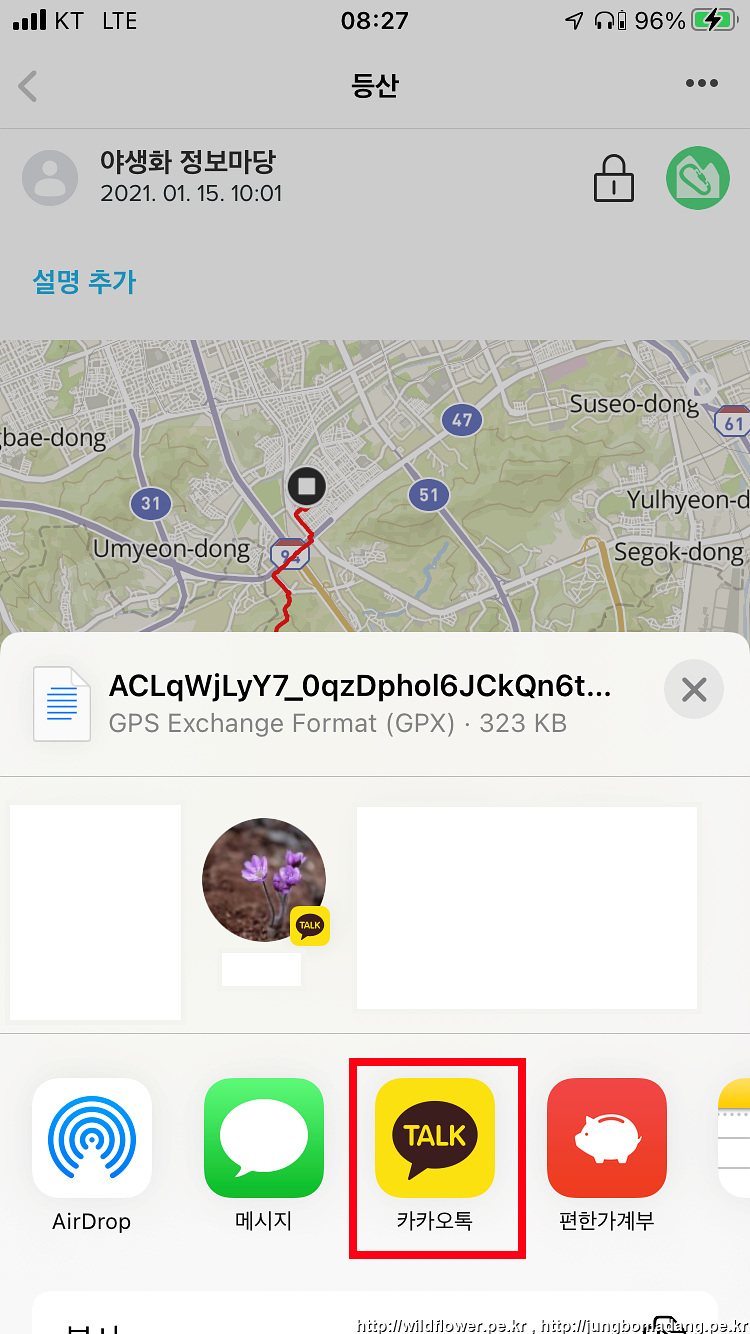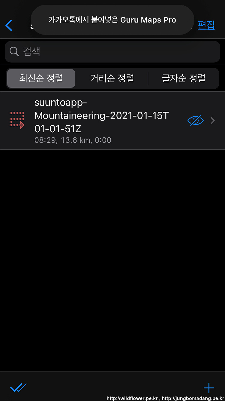 13. gpx 파일을 읽을 앱을 선택하게끔 나오는 데, GPX 앱(제 경우 Guru Maps Pro,유료)을 선택합니다.