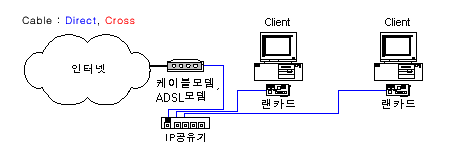 - IP공유기 - 컴퓨터 : 다이렉트 케이블
